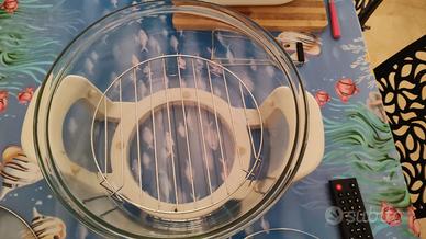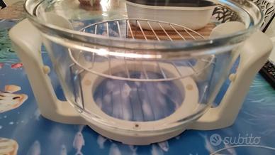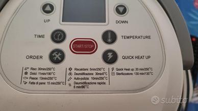 Fornetto elettrico pratico da usare nel display ci sono vari tasti in base alle pietanze da voler cucinare si può inserire la teglia rotonda o poggiare direttamente sulla griglia il cibo c'è la funziona per sterilizzare e autopulizia