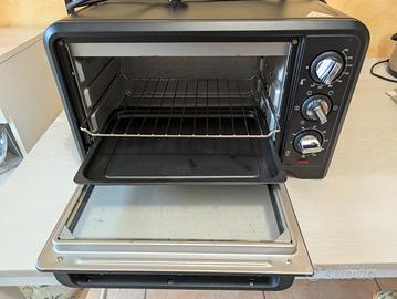 - Forno portatile di facile utilizzo con griglia reversibile e regolabile in altezza