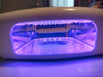 Luce led per unghie, mai usato, fornito di timer, adatto anche per pedicure. Non possiedo la scatola originale. info sul funzionamento nelle foto