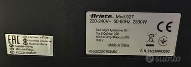 Vendo per inutilizzo fornetto Pizzeria Ariete mod.927 2 pizze in 4 minuti Fornetto perfettamente funzionante e in ottime condizioni Regalo due palette acciaio inox togli pizza