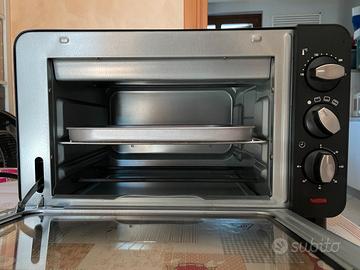 Regolabile e accessoriato: è regolabile tra 100 °C e 230 °C e include una griglia (27 x 26 cm), una teglia (24,5 x 22,2 cm) e un raccoglibriciole