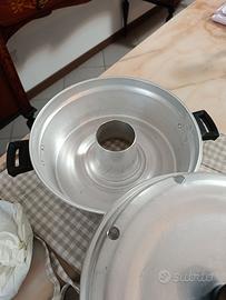 utensile da cucina in alluminio che cuoce cibi, come torte e pane, direttamente sul fornello a gas, comprende spargifiamma