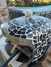 Forno Masaniello completo come in foto 50 kg di peso. Ritiro a mano Questo forno è internamente costruito in acciaio: INTERNAMENTE AISI 430 ESTERNAMENTE IN MURATURA PIANO COTTURA 45cmx40cm DIMENSIONI ESTERNE 55cmx64cmx54h Il biscotto utilizzato è quello di Casapulla il migliore per la cottura della pizza! Il potente bruciatore di 9kW permette di raggiungere temperature fino a 550°C, Il peso del forno è di 54Kg. Per la coibentazione ci sono 3 strati di fibra ceramica ecologica ad alta densità. Prezzo del nuovo 650€ +accessori