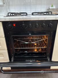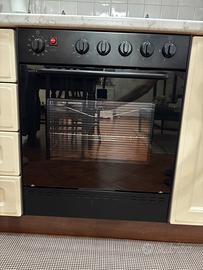 Cucina composta da forno a gas da incasso Nardi abbinato a piano cottura con fornelli a gas, ideale per una cucina funzionale e pratica. Il forno da incasso offre una buona capacità interna, sistema di cottura a gas con termostato regolabile, luce interna e spesso funzioni aggiuntive come grill elettrico e girarrosto, che permettono di preparare diversi tipi di piatti in modo uniforme.
