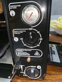 forno a gas ideale per il campeggio, 30 Lt, potenza fino a 250 C° piezo elettrico , doppio ripiano usato pochissimo,timer,valvola di sicurezza, 3 bombolette omaggio, perfetto qualsiasi prova. praticamente nuovo, funziona con le bombolette di PropanoGPL.
