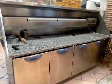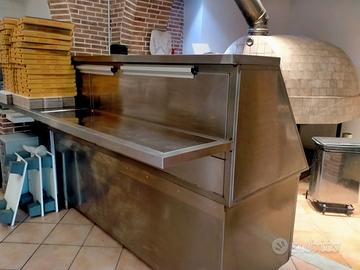 forno a legna pavesi fatto a mano, bancone frigo 4 sportelli più linea condimenti da 16 vaschette.
