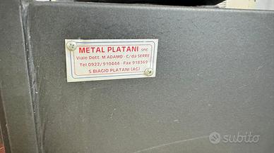 Vendo forno a legna artigianale realizzato dalla ditta Metal Platani snc di San Biagio Platani (AG), ideale per la preparazione di pizza, pane, focacce e arrosti. Il forno è robusto e funzionale, dotato di: •🔥 Camera di cottura con pietra refrattaria per una cottura uniforme. •🌡️ Termometro integrato per il controllo preciso della temperatura. •🚪 Doppio sportello con vetro per monitorare la cottura senza dispersione di calore. •🪵 Struttura con vano inferiore per riporre la legna. •🛠️ Costruzione artigianale in acciaio, solida e durevole nel tempo. •🌬️ Canna fumaria inclusa. Il forno è perfettamente funzionante; presenta solo normali segni di utilizzo che non ne compromettono le prestazioni. All’interno si possono mettere fino a quattro teglie grandi da pizza È presente anche illuminazione interna