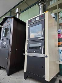 Semplice, essenziale e funzionale Carrello integrato nella struttura, ventilazione, termometro, timer, illuminazione interna, mensolina frontale,2 griglie cromate, 1 teglia, accessorio prenditeglie, attizzatoio, comignolo con valvola fumi, guanto.