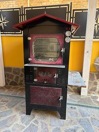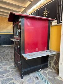 Vendesi forno a legna usato poche volte. Misure esterne h178cm L82cm prof.112cm con rotelle trasportabile. Misure interne piano cottura cm80x50 con tre piani illuminato e ventilato.