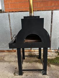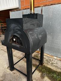 Forno a legna per pizza realizzato con anima refrattario ed esterno in lamiera zincata e verniciata. Si cucinano due pizze alla volta.