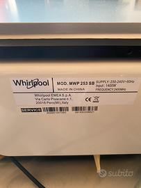 Vendo forno a microonde whirlpool mod MWP 253 SB usato pochissime volte, in ottimo stato, e messo via per trasferimento e mancanza di spazio. Per i dettagli sulle funzionalità potete cercare il codice su internet perche è ancora in regolare vendita. 90€. Consegna a mano zona castelli romani/ Valmontone.