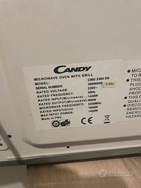 Forno microonde Candy, funzione Grill perfettamente funzionante con libretto. Qualche segno di usura come da ultime foto, il piatto a volte non gira ma il funzionamento è perfetto. Vendo con piatto in vetro interno. Ritiro a mano a Manerbio.