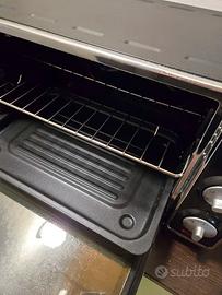 Forno a microonde elettrico con tostapane. Include teglia, griglia e girarrosto. Imposta modalità di cottura, temperatura e timer. Ottima qualità, ancora con la confezione originale.