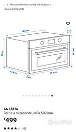 Forno a microonde da incasso in acciaio inox, ANRÄTTA, frontale quadrato con display digitale e manopole.