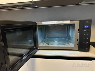 Come nuovo! Vendo causa cambio cucina con microonde incassato. Questo microonde è potente e veloce, molto spazioso (volume utile interno 32 L) e consente l’uso di pirofile in vetro. È bello esteticamente, con anta a specchio di colore nero. Dotato di molteplici programmi per la cottura e riscaldamento dei cibi: funzione crisp, funzione inverter, funzione grill 1000W, funzione scongelamento. Dotato di piatto rotante di 36 cm. Controllo touch molto intuitivo e pannello comandi elettronico, con display e timer. Dimensioni e peso: 54.4 cm x 30.8 cm x 45.8 cm / 15.3 kg