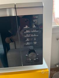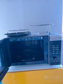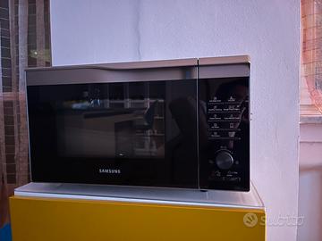 Forno a microonde combinato Samsung HotBlast con tecnologia ventilata. Praticamente nuovo. Poco usato Capacità: 28 litri. Potenza Microonde: 900 W. Funzioni: Include la tecnologia HotBlast per una cottura uniforme e rapida, funzione Slim Fry, grill e cottura ventilata. Caratteristiche: Dimensioni di circa 52l x 31h x 46p cm, con pannello di controllo a manopola e pulsanti.