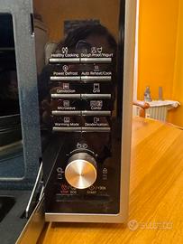 Vendo forno a microonde Samsung dimensioni: profondità complessiva (compresi maniglia aprisportello e schienale) 52 cm; altezza 30,5 cm; larghezza interna 34 cm; profondità interna 35 cm; altezza interna 22 cm