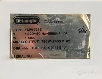 Forno a Microonde Sfornatutto DeLonghi, con ripiano in Pyrex e Manuale originale "Istruzioni per l'uso e Ricettario"