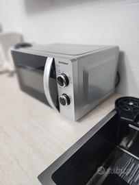 Vendesi forno a microonde marca SilverCrest, ideale per chi cerca semplicità d'uso e prestazioni affidabili. Design elegante in argento e nero che si adatta a ogni cucina.