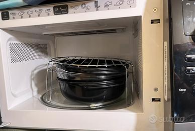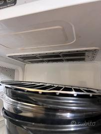 Forno a microonde whirlpool vt 263 perfettamente funionante. Tante opzioni disponibilii: riscaldamento, congelamento, grill, cottura a microonde più grill, cottura a vapore, scaldavivande. dotato di tutti gli accessori originali:griglia, vaporiera, libretto di istruzioni. Senza scatola originale. Difetti: la rotellina per impostare il peso/tempo non funziona bene e due vite esterne sono arrugginite, come in foto. No soedizione, solo consegna a mano