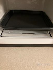 Forno a microonde Whirlpool usato ma pari al nuovo, modello extra space crisp, colore nero, programmi per cibo automatici, programma scongelamento, programma speciale scongelamento pane, piatto crisp quadrato per cottura, pizze, torte, pianificati, eccetera. Dimensioni: larghezza 49 cm, profondità 37 cm, altezza 32 cm
