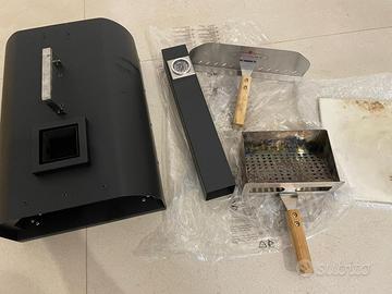 Si può utilizzare anche con carbonella o piccoli pezzi di legna, sempre affiancato al pellet per tenere alta la temperatura del forno.