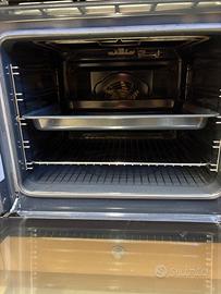 Forno multifunzione SurroundCook Vano cottura XXL MaxiKlasse e teglia XXL MaxiTray 8 funzioni cottura + riscaldamento rapido automatico Programmatore elettronico di inizio-fine cottura con display digitale Regolazione della temperatura da 50 a 275°C Regolazione e controllo elettronico della temperatura da 50 a 250 °C Manopole pop in/pop out Sistema di ventilazione ThermiC° Air Sistema OptiFlex (5 livelli di posizionamento teglie) Ventilazione tangenziale di raffreddamento IsoFront Plus - sicurezza porta fredda con 3 vetri Spegnimento automatico di sicurezza Sicurezza bambino (blocco accensione) Sicurezza blocco tasti Porta removibile e vetri interni estraibili Guide EasyEntry 1 leccarda smaltata, 1 teglia dolci, 1 griglia Luce interna FloodLight Classe di efficienza energetica A Estetica inox antimpronta