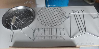 Cottura dei cibi senza grassi, capiente si cucinare più pietanze nello stesso momento. Regolazione della temperatura, Timer, interuttore di arresto immediato. Cottura alla brace, arrosti, a vapore e persino sterilizzatore. Corredato di teglia per pizza in alluminio, inserto acciaio per toast, spiedini ecc .. Istruzioni e ricettario. Usato pochissimo.