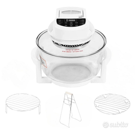 Il contenitore del forno alogeno è realizzato in vetro, in modo da poter osservare chiaramente il processo di cottura. Ha una grande capacità di 12 L per contenere grandi quantità di cibo. Il forno cuoce le pietanze facendo circolare aria calda in modo uniforme e completo, quindi richiede meno tempo di cottura rispetto al forno a convezione medio e favorisce il risparmio di energia e di tempo. L'anello di estensione consente di ingrandire lo spazio del forno alogeno per poter preparare pasti più grandi. Inoltre, dotato di un timer a controllo digitale, lo scaldavivande preparerà cibo delizioso per voi e la vostra famiglia!