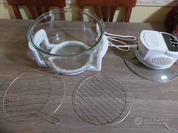 Accessori: griglia alta, griglia bassa, pinze (non ho fatto foto ma ci sono); Recipiente in vetro facilmente estraibile per una comoda pulizia; manuale d'istruzioni. Misure articolo cm 33,5 X 33 X 38,5 Peso lordo (gr.) 6,4150 Peso netto (gr.) 5,000