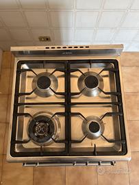 Vendo forno con piano cottura a gas in acciaio inox, completo di griglie e manopole, marca Smeg. Usato ma funzionante, condizioni come da foto.