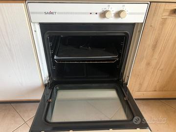 Vendo forno da incasso SAMET da 60 cm. Tenuto bene e perfettamente funzionante, con regolazione della temperatura e dei vari tipi di cottura, compreso il grill e la cottura allo spiedo. SAMET è una ditta italiana che produce in Italia elettrodomestici di qualità, ha la sede in provincia di Vicenza e fa parte dello stesso gruppo di Ocean e SanGiorgio, li trovate in vendita anche su Amazon. E’ compreso il manuale di istruzioni. Vendo per inutilizzo e perché al suo posto voglio metterci la lavatrice.