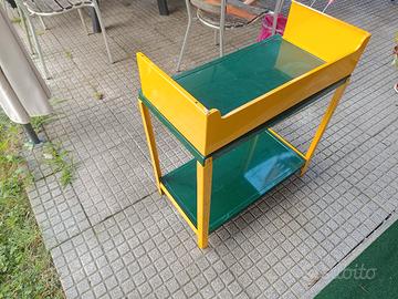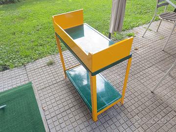 Elegante fornello a 3 fuochi a gas da campeggio Made in Italy dalla Bst 55x28x8. con tavolino pieghevole colore verde e giallo.