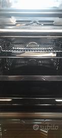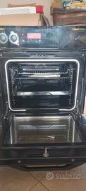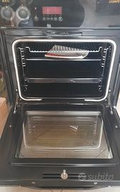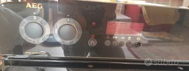 Forno da incasso AEG usato ma perfettamente funzionante. Ha la funzione di evacuazione dei vapori così da regolare l'umidità del forno durante la cottura di dolci o arrosti e la funzione di pulizia pirolitica che permette di trasformare i resti di arrosto o cottura in polverino da asportare facilmente dal forno. Presenta un elemento divisore del forno così da cuocere piccole pietanze in modo economizzato rispetto ai forni tradizionali. Poco funzionante il tasto dell'orario giornaliero. No spedizione.