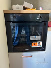Forno da incasso Indesit IB 22RE X nuovo, mai usato, ancora in condizioni perfette. Modello ideale per uso quotidiano. Capacità 74 litri, classe energetica A, con 3 funzioni di cottura. Raggiunge fino a 250°C. Presente sistema Click&Clean per smontare facilmente il vetro della porta e funzione Steam&Clean per la pulizia a vapore senza detergenti. Controporta full glass e finitura inox. Dimensioni standard da incasso (59,5 x 59,4 x 56,7 cm).