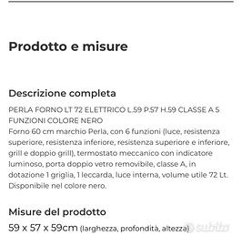 Vendesi forno da incasso NUOVO, ancora imballato, sconfezionato soltanto per le foto. Misure e descrizione in foto. Ritiro a mano a Trieste