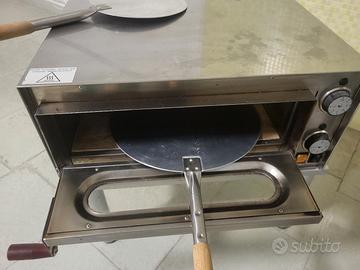 Vendo forno elettrico per pizza in ottime condizioni , insieme regalo palette per infornare e girare pizza ed infine alzatina per forno per lavorare in comodità.