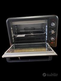 Forno elettrico moulinex termostato fino a 240°C, timer fino a 120 min, selettore tra 6 modalità, com giraatrosto e spegnimento del girarrosto, lampada interna per controllare facilmente la cottura. Questo forno offre diverse modalità di cottura per i piatti di tutti i giorni. Cucina qualunque tipo di ricetta: antipasto, carne, pesce, pizza, gratinato o dessert, e persino il pollame, grazie al girarrosto. Sono inclusi degli accessori che facilitano la cottura: la griglia reversibile consente 8 diversi livelli di cottura, vassoio per cottura al forno per riscaldare facilmente i piatti, girarrosto.