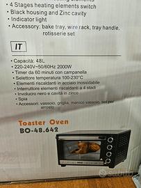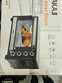 Con un incredibile potenza di 2000 watt e una capienza ben 48 litri il nuovo forno elettrico di Bakaji per cucinare più alimenti contemporaneamente risparmiando tempo ed energia. Grazie alle manopole laterali è possibile regolare la tipologia di cottura come statica ventilata grill toast e arrosto, regolare la temperatura da 100 a 230 gradi, scegliere il numero di elementi riscaldanti da attivare ed in fine regolare il timer fino ad un massimo di 60 minuti con campanello di avviso.