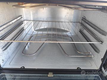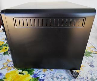 Forno elettrico capacità 50 L, potenza 2000W, controllo della temperatura dai 30 ai 250 gradi, controllo funzione 4 tipi di cottura, sportello con doppio vetro isolante, ventilazione, timer 90 minuti con suono, luce interna, spia luminosa ON/OFF. Dotato di teglia antiaderente e griglia in acciaio inossidabile. Peso netto 12,32 Kg. Vendo per inutilizzo, consegna a mano.