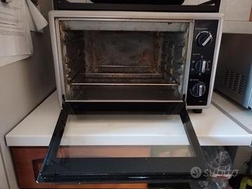 Il forno è perfettamente funzionante, pulito e igienizzato. Le macchie visibili in foto sono dovute ai normali utilizzi, ma è stato accuratamente pulito dopo ogni uso.
