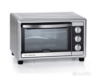 Vendo forno elettrico ariete Bon Cuisine 250 metal, mai utilizzato, ancora in pellicola, rimosso solo lo scotch del cartone esteriore. Vendo perche mi é stato regalato ma non ne ho necessitá.