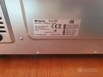 Fornetto elettrico Ariete Bon Cuisine 300, ottimo stato, perfettamente funzionante in quanto usato davvero poco.Solo consegna a mano, no spedizioni.€ 45 trattabili. Cassino o Itri