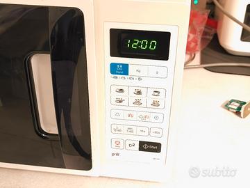 Forno elettrico combinato grill microonde Samsung ottimo stato Microonde Samsung Grill Cottura Croccante 20L GE73A Prodotto Grill Capacità forno 0,7 cu.ft / 20 litri Consumo (microonde) 1150 W Esterno (LxAxP) 489 x 275 x 373 mm Caratteristiche Specifiche Supporto Microonde Samsung Grill Cottura Croccante 20L GE73A La mia Lista dei Desideri Front Side Precedente Microonde Samsung Grill Cottura Croccante 20L GE73A Dove acquistare Questo prodotto non è più disponibile Caratteristiche Scongela i tuoi cibi in un battibaleno. Scongela i tuoi cibi in un battibaleno. Le operazioni di scongelamento richiedono sempre molto tempo e il risultato spesso è imprevedibile. In molti casi i cibi scongelati risultano mollicci in alcuni punti e duri come la roccia in altri. La funzionalità Rapid Defrost di Samsung consente di scongelare i cibi in maniera rapida e uniforme, ripristinando la freschezza che avevano prima della surgelazione e assicurandoti sempre pasti deliziosi. Adatto a tutte le cucine Adatto a tutte le cucine La struttura contenuta richiede poco spazio e si integra alla perfezione in qualsiasi cucina. Specifiche Riduci Panoramica Prodotto Grill Capacità forno 0,7 cu.ft / 20 litri Consumo (microonde) 1150 W Esterno (LxAxP) 489 x 275 x 373 mm Tipologia Prodotto Grill Tipo di installazione Free standing Capacità Capacità forno 0,7 cu.ft / 20 litri Materiali/Rifiniture Colore (porta) Bianca Colore Bianca Control Type Membrana Tipo di porta Maniglia Vano cottura in ceramica Smalto ceramico Dimensioni piatto girevole 255 mm Display LED Grill Guaina Potenza/Prestazioni Alimentazione 230V/50Hz Alimentazione (microonde) 750 W Consumo (Grill) 1100 W Consumo (Max) 2250 W Consumo (microonde) 1150 W Livello di potenza 6 Caratteristiche Tipi di cottura Sì Orologio Sì 30 sec. Plus Sì Eco Mode Sì Scongelamento (Auto / Power / Sensore) Sì (Rapido) Sensore cottura No Cottura a vapore No Auto Steam Cook N
