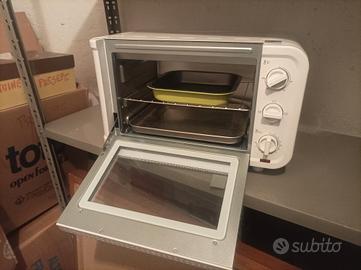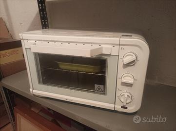 Piccolo forno elettrico, perfettamente funzionante, in ottimo stato e usato poco. Vendo per inutilizzo assieme alle teglie. Dimensioni/ingombro: 40 x 50 cm
