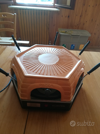 . Forno x pizza. Diametro piastra 33 cm, sollevatori 11cm.copertura in terracotta. Possibilità di fare una pizza grande o 6 piccole grazie ai sollevatori. Cottura in 5/7minuti. Niente fumo. Si pulisce facilmente. La copertura in terracotta può essere utilizzata anche per mantenere caldo. Divertimento in famiglia x tutti. Pagato 119,99€ sul sito ufficiale. Possibilità spedizione 15€.