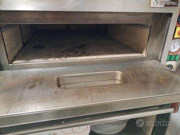 Titolo: Forno pizza professionale Giga con pietra refrattaria + supporto Prezzo: 560 € Descrizione: Vendo forno professionale marca Giga, ideale per pizzeria, ristorante o laboratorio. Il forno è dotato di: - piano in pietra refrattaria (base e laterali) - sportello con vetro ispezione - controllo temperatura e termometro analogico - struttura robusta in acciaio inox Incluso nel prezzo: - piedistallo in ferro verniciato nero - ripiano intermedio in acciaio inox (a 60 cm da terra), utile per appoggio teglie o utensili Dimensioni forno: 111 x 45 x 90 cm Dimensione interna utile 92 x 62 cm Temperatura massima 500 Dimensioni totali con supporto: 103 x 110 x 149 cm (altezza totale) Il forno è funzionante e in buone condizioni, presenta normali segni di utilizzo sulla pietra interna. Perfetto per: - pizza - focacce - pane Ritiro a mano. Per informazioni o prova scrivere in privato. Forme funzionante attualmente lo sto usando l'unico programma è la lampada interna che si fulmina spesso. Vendo solo per passaggio a doppia camera.