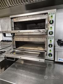 Forno elettrico professionale per cottura pizza e focacce Rivestimento frontale in acciaio inox Piano di cottura refrattario 4 termostati di controllo Temperatura di esercizio 50/500°C