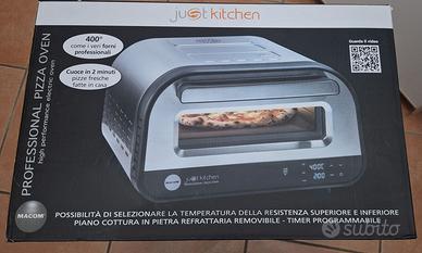 Vendo causa inutilizzo, forno elettrico professionale per pizza marca Just Kitchen mod. Macom 884. Caratteristiche tecniche: Piano cottura in pietra refrattaria removibile Regolazione temperatura resistenza superiore e inferiore Timer programmabile Temperatura max 400° Cuoce in 2 minuti