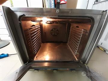 Vendo forno elettrico professionale con ventola. Dimensioni: Larghezza 60cm Altezza 60cm Profondità 53cm Teglie da 41cm di larghezza Prezzo trattabile Non spedisco